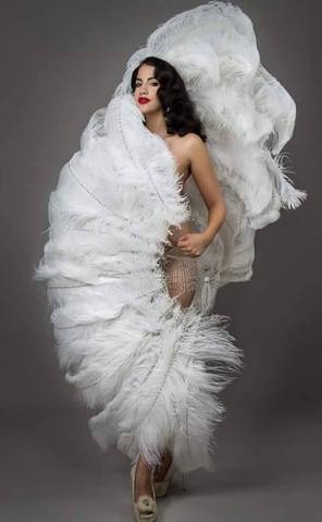 Lila Starlet pays homage to Classic Burlesque with her Ostrich Feather Fan Dance. Watch as Lila strips and then ends with just her 6 foot white feather fans covering her. A sparkling delight sure to dazzle and enthrall!
